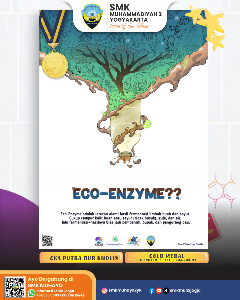Mengangkat tema “Jagat Data Berkarya” dan “Eco-Enzyme??”, karya mereka tidak hanya memikat dewan juri, tetapi juga memberikan pesan kuat tentang pentingnya teknologi dan lingkungan dalam kehidupan masa kini. Setiap goresan visual yang diciptakan menunjukkan bagaimana ide sederhana dapat menjelma menjadi karya luar biasa ketika dipadukan dengan imajinasi dan semangat belajar yang tinggi. Prestasi ini menjadi bukti bahwa siswa SMK Muhammadiyah 2 Yogyakarta mampu mengolah gagasan menjadi karya yang relevan dan berdampak.