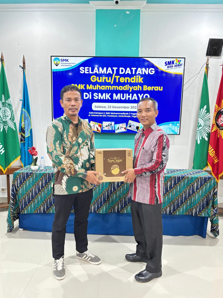 Yogyakarta – SMK Muhammadiyah 2 Yogyakarta (SMK MUHAYO) kembali menjadi tujuan studi banding dari sekolah Muhammadiyah luar daerah. Pada hari Selasa tanggal 23 Desember 2025, SMK MUHAYO menerima kunjungan dari SMK Muhammadiyah Berau, Kalimantan Timur.